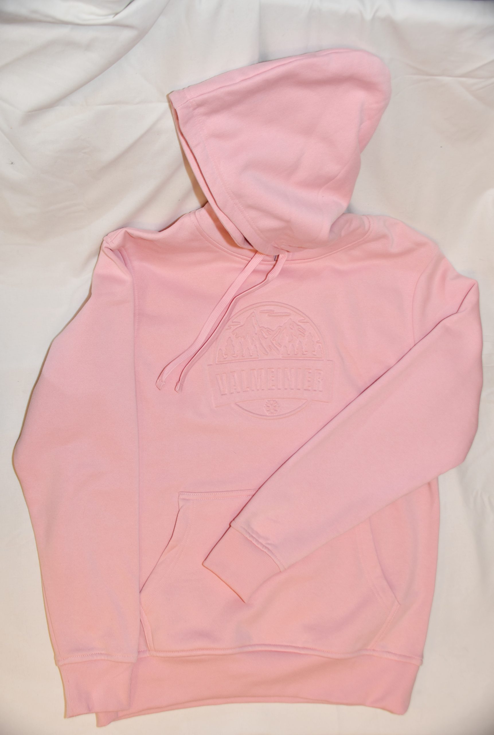 Sweat à capuche avec logo VALMEINIER gaufré rose pale, pour un style rider ou à porter au quotidien !